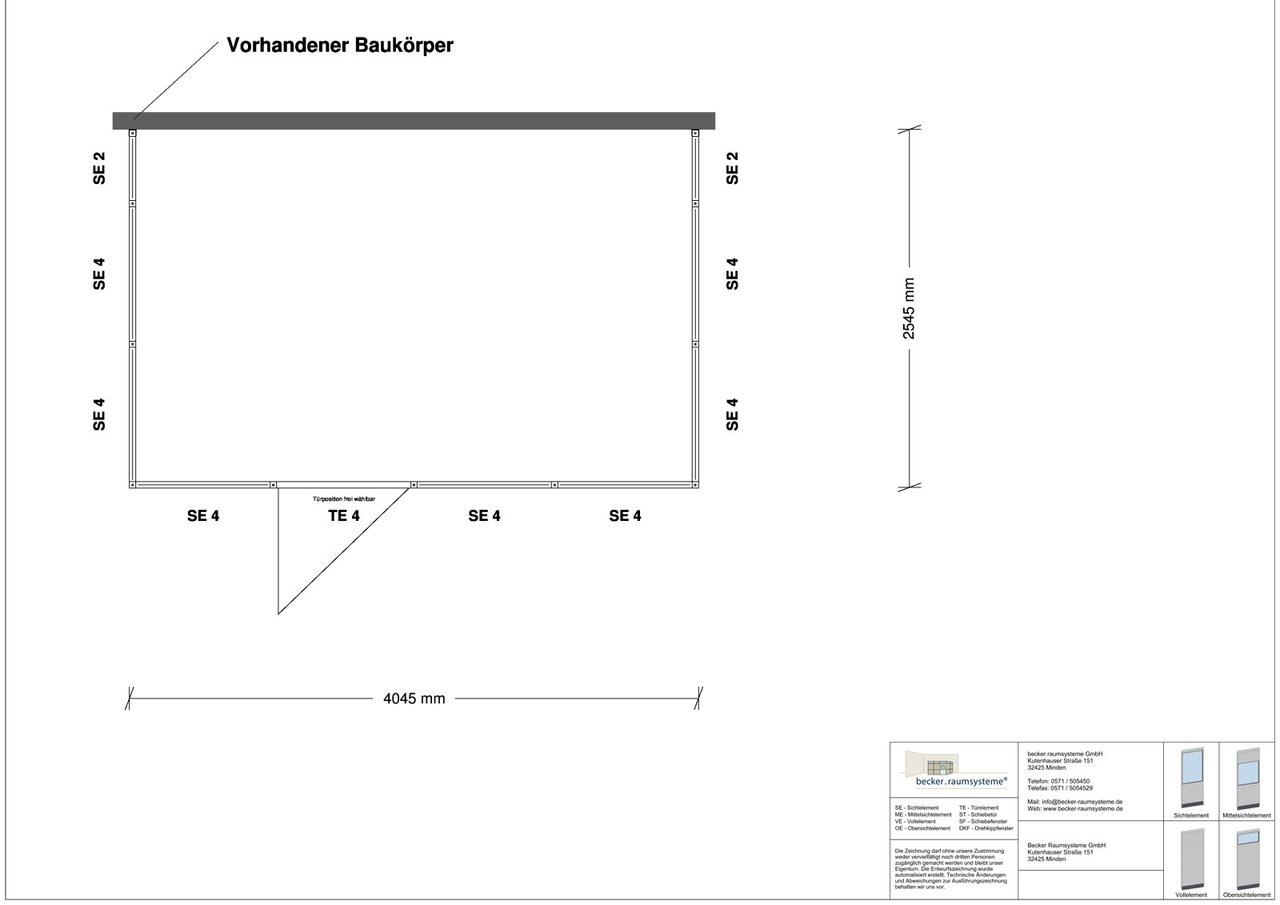 3-seitig, Abmessung: L x T = 4.045 x 2.550 mm, Innenmaß: L x T = 3.955 x 2.505 mm, lichte Raumhöhe 2.510 mm, Außenhöhe 2.677 mm