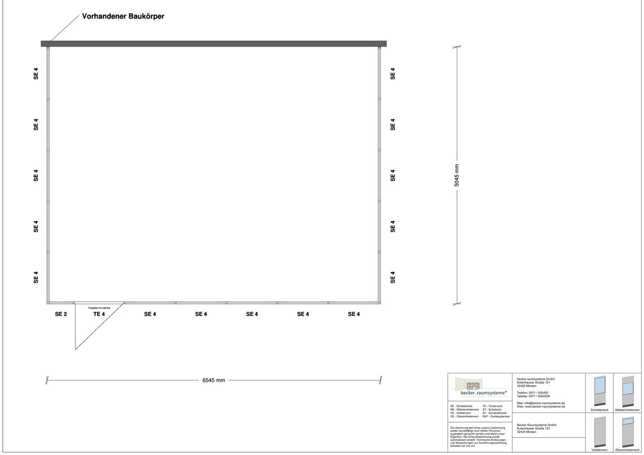 Die einzigartigen Argumente des Hallenbüros HB3-6550 sprechen für sich: Es handelt sich um ein modulares Baukastensystem, das sich flexibel an jede bauliche Gegebenheit anpassen lässt. Dank der Wandausgleichselemente kann das System problemlos an unterschiedliche Maße angepasst werden, wodurch Sie maximale Flexibilität erhalten. Die lichten Innenmaße von 6.455 x 5.005 mm und die lichte Raumhöhe von 2.510 mm schaffen eine angenehme Atmosphäre. Darüber hinaus können alternative Glastypen gewählt werden, um spezifischen Anforderungen gerecht zu werden.