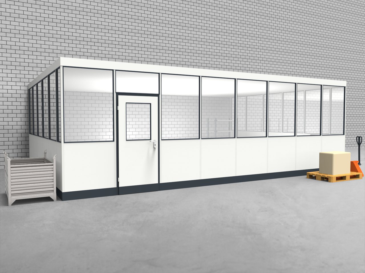 Die Lieferung der Hallenbüros erfolgt als Bausatz in Einzelteilen. Die Lieferkosten innerhalb Deutschland (Festland) sind frei Bordsteinkante im Preis enthalten. Das Abladen der Einzelteile auf Paletten erfolgt bauseits. Die Montage durch erfahrene Fachmonteure vor Ort erfolgt gegen Aufpreis. Elektroinstallationen gehören nicht zum Montageumfang. Die Einrichtungsgegenstände auf den Bildern gehören nicht zum Lieferumfang.