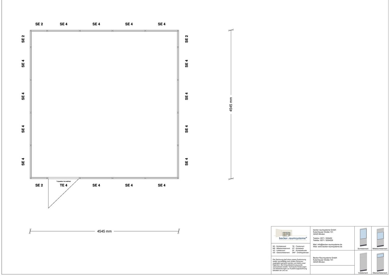 Auf technischer Seite überzeugt das Hallenbüro mit präzisen Abmessungen von 4.545 x 4.545 mm (Außenmaß) und einem Innenmaß von 4.455 x 4.455 mm. Mit einer lichten Raumhöhe von 2.510 mm und einer Außenhöhe von 2.677 mm bietet es ausreichend Platz für kreative Entfaltung. Die Montage erfolgt durch unsere Montagepartner vor Ort, um sicherzustellen, dass Ihr neues Büro schnell und professionell bereitgestellt wird. Zudem sind die Lieferkosten innerhalb Deutschlands bereits in unseren Shoppreisen enthalten, was Ihnen zusätzliche Planungssicherheit gibt.