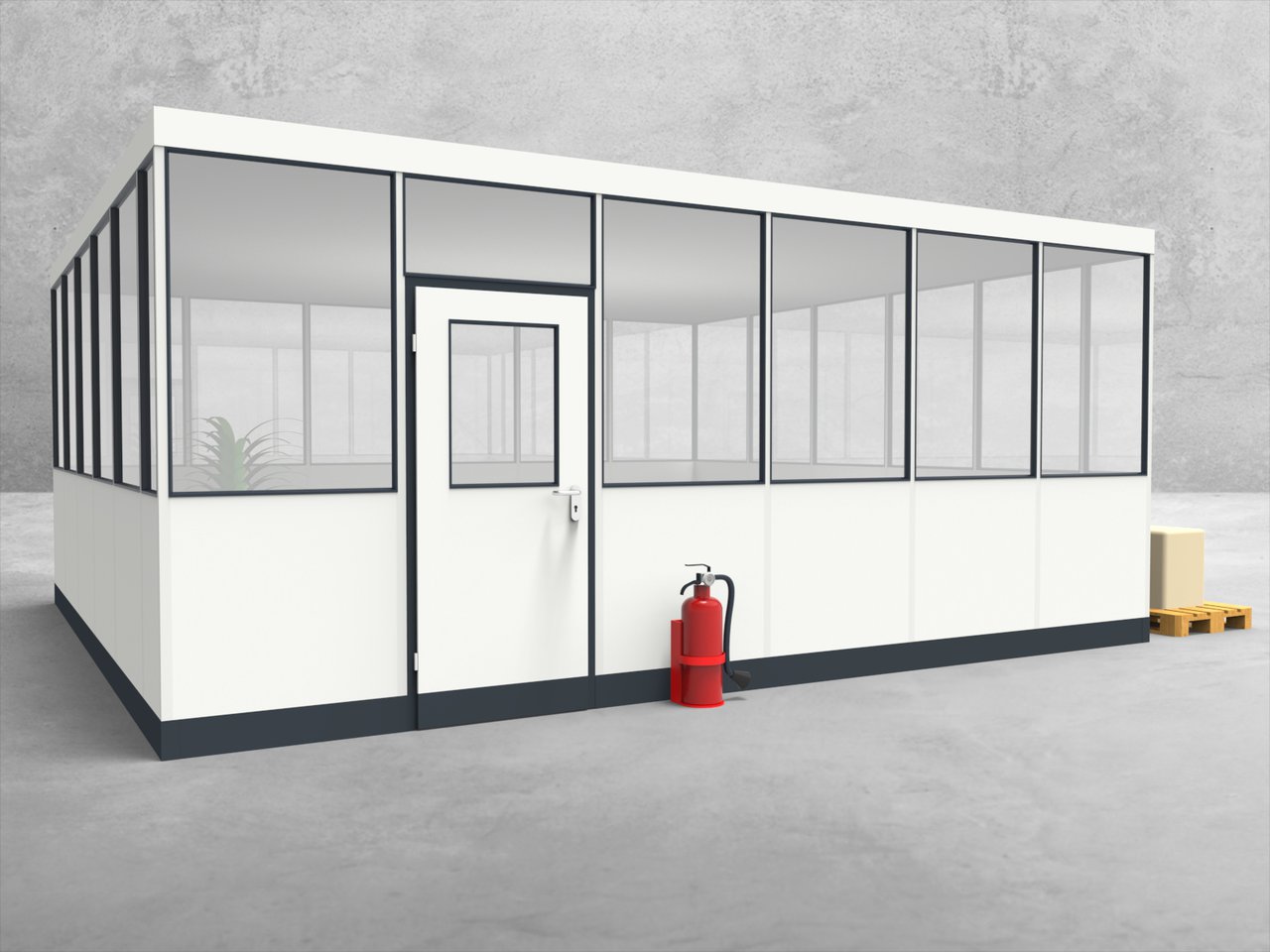 Die Lieferung der Hallenbüros erfolgt als Bausatz in Einzelteilen. Die Lieferkosten innerhalb Deutschland (Festland) sind frei Bordsteinkante im Preis enthalten. Das Abladen der Einzelteile auf Paletten erfolgt bauseits. Die Montage durch erfahrene Fachmonteure vor Ort erfolgt gegen Aufpreis. Elektroinstallationen gehören nicht zum Montageumfang. Die Einrichtungsgegenstände auf den Bildern gehören nicht zum Lieferumfang.