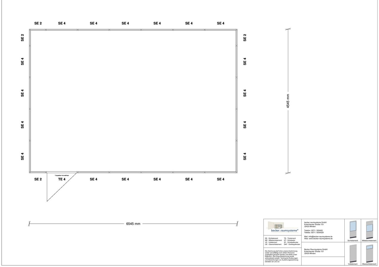 Das Hallenbüro HB4-6545 bietet Ihnen eine maßgeschneiderte Lösung für Ihre Arbeitsumgebung, die sowohl Funktionalität als auch Ästhetik vereint. Mit einer großzügigen Grundfläche von 29,25 m² und den Abmessungen von 6.545 x 4.545 m schafft dieses freistehende Büro einen idealen Raum für konzentriertes Arbeiten. Durch seine modulare Bauweise können Sie das Büro flexibel an Ihre individuellen Bedürfnisse anpassen und so einen effektiven Arbeitsplatz schaffen, der den Anforderungen moderner industrieller Anwendungen gerecht wird.