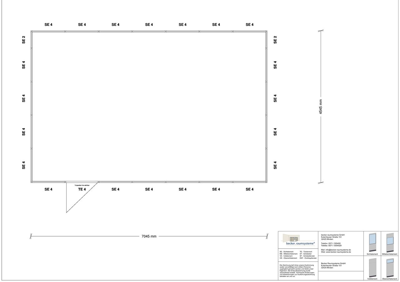 Das Hallenbüro HB4-7045 ist die ideale Lösung für Unternehmen, die Wert auf Flexibilität und Funktionalität legen. Mit einer großzügigen Grundfläche von 31,5 m² und den kompakten Abmessungen von 7.045 x 4.545 mm bietet dieses vierseitig freistehende Büro nicht nur ausreichend Platz für Ihre Mitarbeiter, sondern schafft auch eine angenehme Arbeitsatmosphäre. Durch die innovative Modularität des HB4-7045 können Sie Ihre Arbeitsumgebung schnell und unkompliziert anpassen, um den sich ständig ändernden Anforderungen Ihres Unternehmens gerecht zu werden.