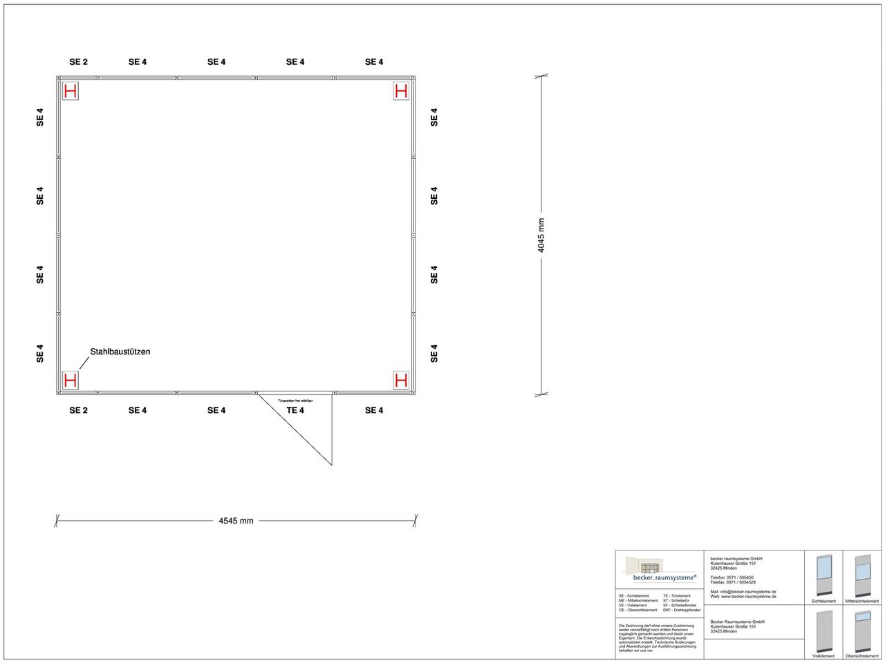 Die Überprüfung nach Eignung und Festigkeit der vorhandenen Bodenplatte erfolgt bauseits. Fußbodengenauigkeiten nach DIN 18202, Tabelle 3, Zeile 3 werden vorausgesetzt.