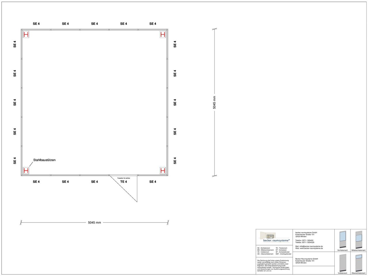 Die Überprüfung nach Eignung und Festigkeit der vorhandenen Bodenplatte erfolgt bauseits. Fußbodengenauigkeiten nach DIN 18202, Tabelle 3, Zeile 3 werden vorausgesetzt.