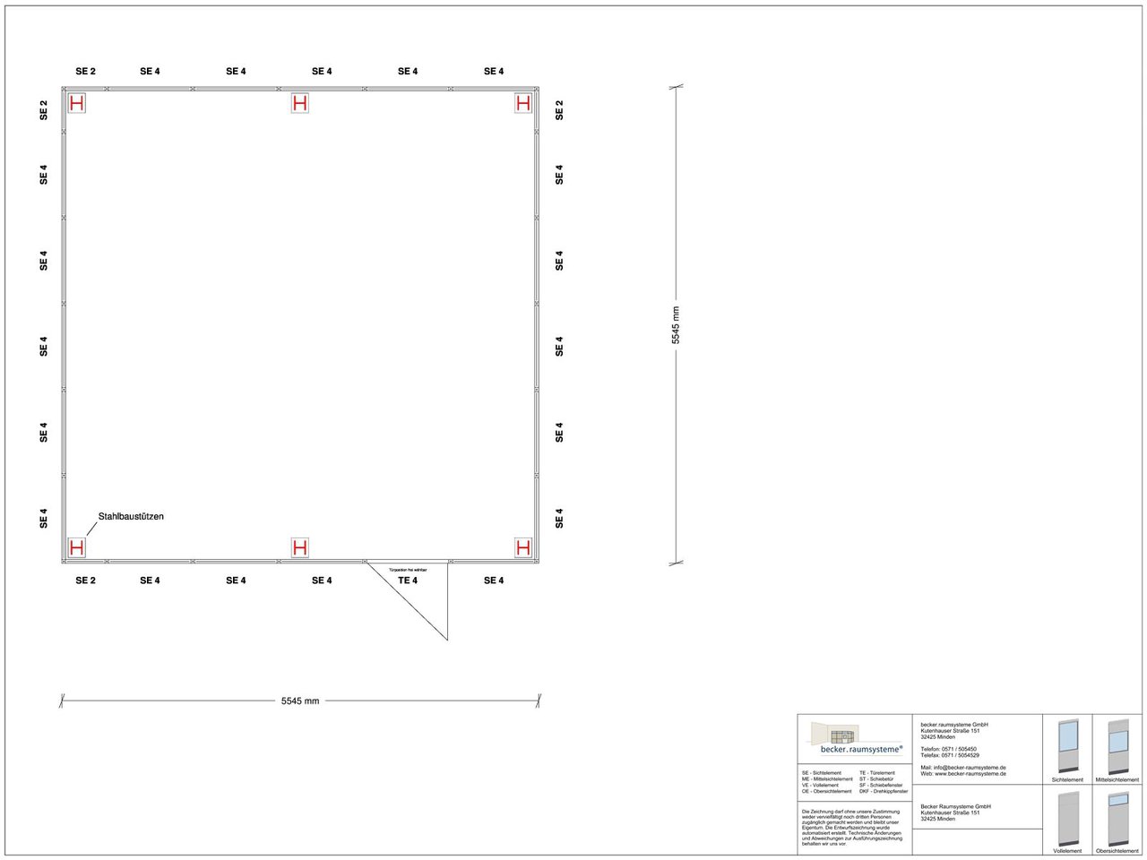 Das zweigeschossige Hallenbüro als Doppelstocklösung HD4-5555 von becker-raumsysteme® bietet Ihnen die ideale Antwort auf die Herausforderungen moderner industrieller Arbeitsumgebungen. Mit einer großzügigen Grundfläche von 30,25 m² und den Abmessungen von 5,5 x 5,5 m ermöglicht dieses freistehende Büro nicht nur eine effiziente Raumnutzung, sondern schafft auch einen strukturierten und produktiven Arbeitsbereich. Die durchdachte Konstruktion fördert die Konzentration Ihrer Mitarbeiter und steigert somit deren Produktivität.