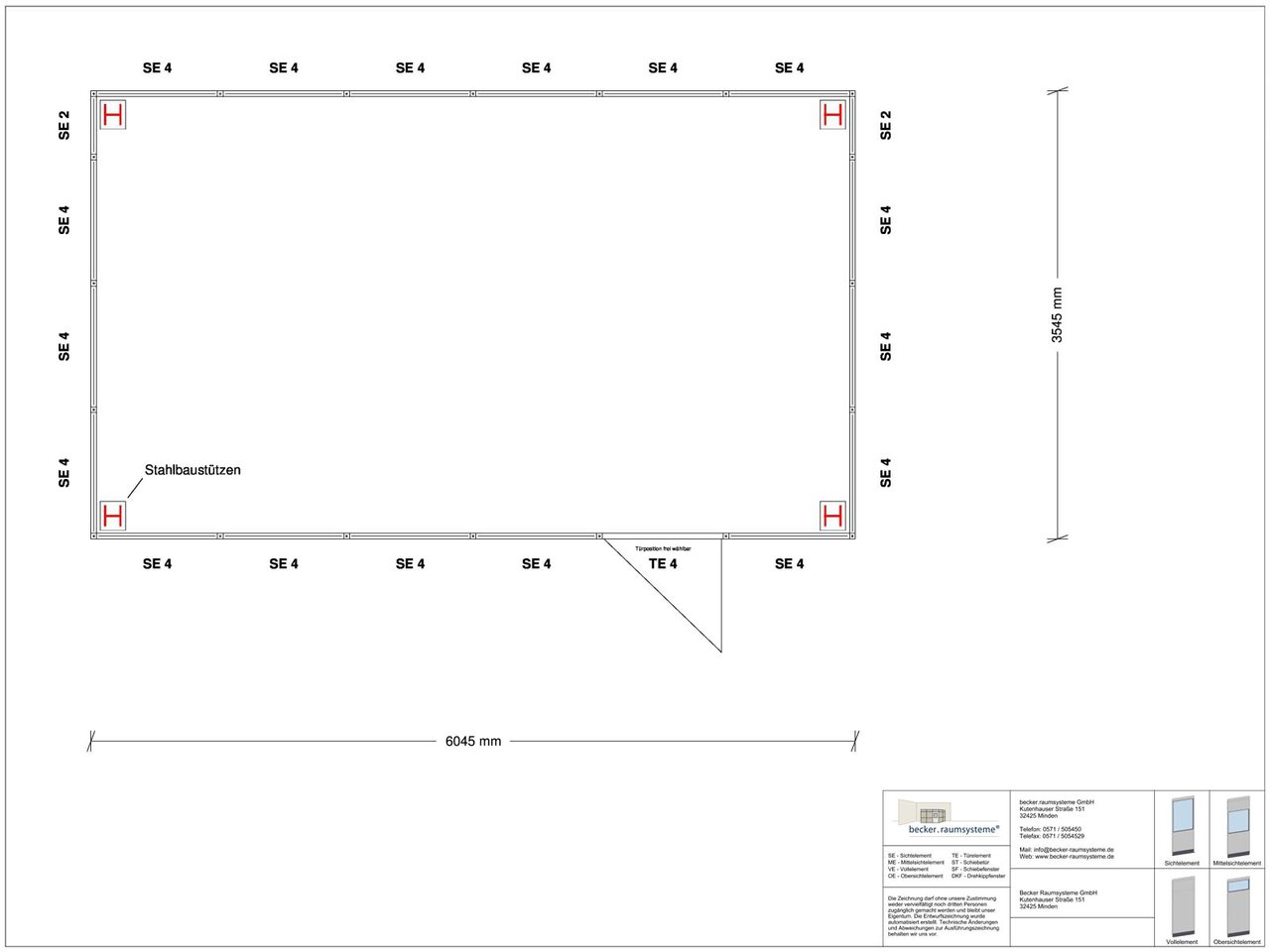Die Überprüfung nach Eignung und Festigkeit der vorhandenen Bodenplatte erfolgt bauseits. Fußbodengenauigkeiten nach DIN 18202, Tabelle 3, Zeile 3 werden vorausgesetzt.