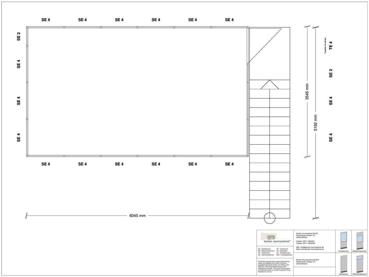Bestehend aus Stahlbaubühne, Erd- und Obergeschoss, Gesamthöhe der Anlage 5.527 mm (zzgl. Montagefreiheit),