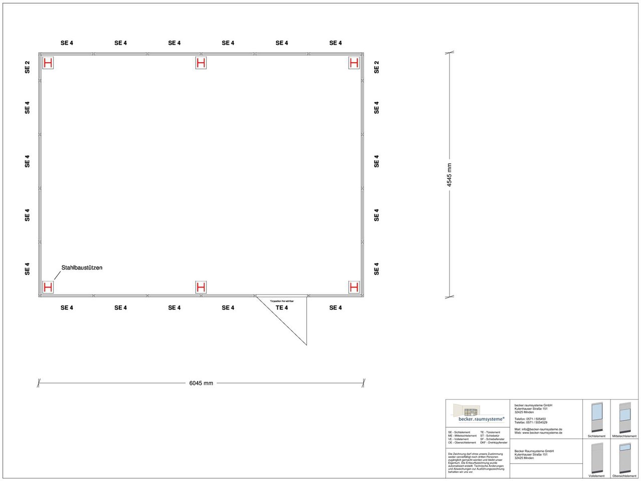 Anprallasten nach DIN 1055 wurden nicht berücksichtigt. Zur Erledigung der Montagearbeiten ist bauseits ein Gabelstapler mit ausreichender Tragkraft und Hubhöhe zu stellen