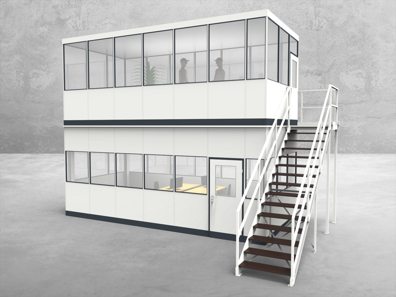 In einer zunehmend dynamischen industriellen Landschaft ist es entscheidend, effiziente und funktionale Lösungen zu finden, die den Anforderungen an moderne Arbeitsumgebungen gerecht werden. Das zweigeschossige Hallenbüro als Doppelstock, mit einer großzügigen Grundfläche von 19,5 m², bietet Ihnen die Möglichkeit, wertvollen Platz in Ihrer Lager- oder Produktionshalle optimal zu nutzen. Durch die freistehende Bauweise wird nicht nur der vorhandene Raum effizient genutzt, sondern auch eine angenehme Arbeitsatmosphäre geschaffen, die die Produktivität Ihrer Mitarbeiter steigert.