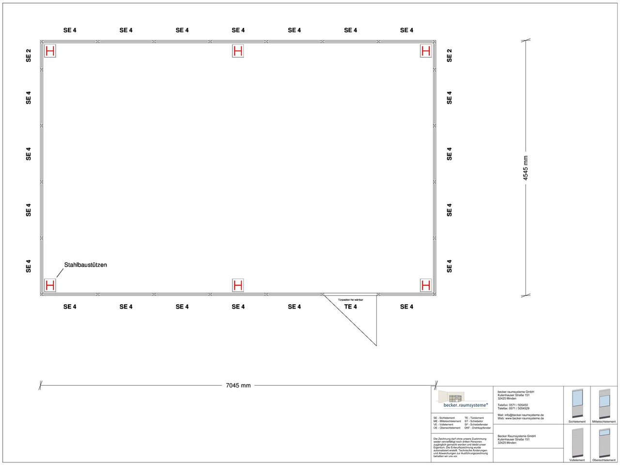 Die einzigartigen Argumente dieses Hallenbüros HD4-7045 liegen in seiner Flexibilität und Anpassungsfähigkeit. Die Konstruktion aus robusten Stahlprofilen gewährleistet Langlebigkeit und Stabilität, während die Möglichkeit der individuellen Gestaltung es Ihnen erlaubt, das Büro nach Ihren spezifischen Anforderungen zu planen. Der lichte Raumhöhe von 2.510 mm im Innenraum sorgt für eine angenehme Atmosphäre, die den Arbeitskomfort erheblich erhöht. Zudem ist das Erdgeschoss als Trennwand ausgeführt, wodurch eine klare Abgrenzung zu anderen Bereichen Ihrer Halle ermöglicht wird.