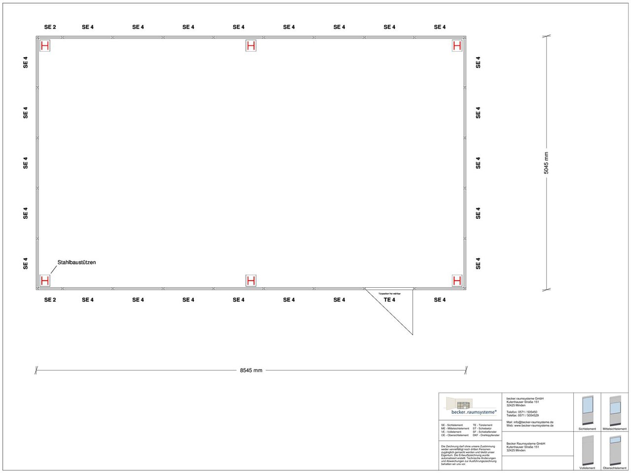 Anprallasten nach DIN 1055 wurden nicht berücksichtigt. Zur Erledigung der Montagearbeiten ist bauseits ein Gabelstapler mit ausreichender Tragkraft und Hubhöhe zu stellen