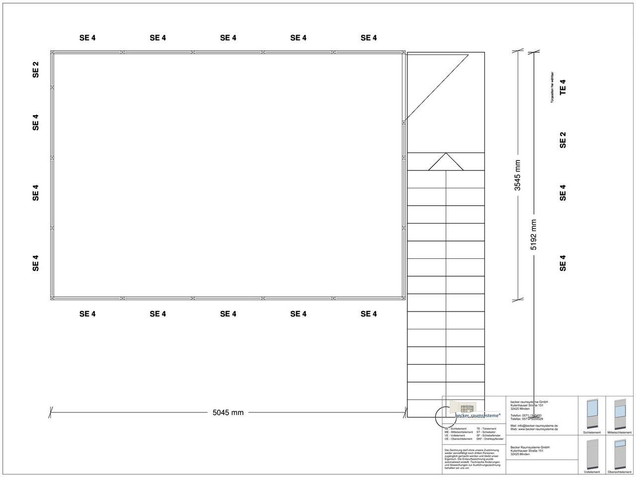 Das Hallenbüro HS4-5035 auf Stahlbau von becker.raumsysteme® bietet Ihnen eine durchdachte Lösung zur optimalen Nutzung Ihrer Lager- und Produktionsflächen. Mit einer großzügigen Grundfläche von 17,5 m² und den kompakten Abmessungen von 5 x 3,5 m ist dieses Büro nicht nur funktional, sondern auch eine wertvolle Erweiterung Ihres Arbeitsumfeldes. Durch die Erhöhung des Büros auf einer stabilen Stahlbaubühne gewinnen Sie zusätzliche Lagerfläche unterhalb der Räumlichkeit, was Ihre Effizienz steigert und Platz für andere betriebliche Aktivitäten schafft.