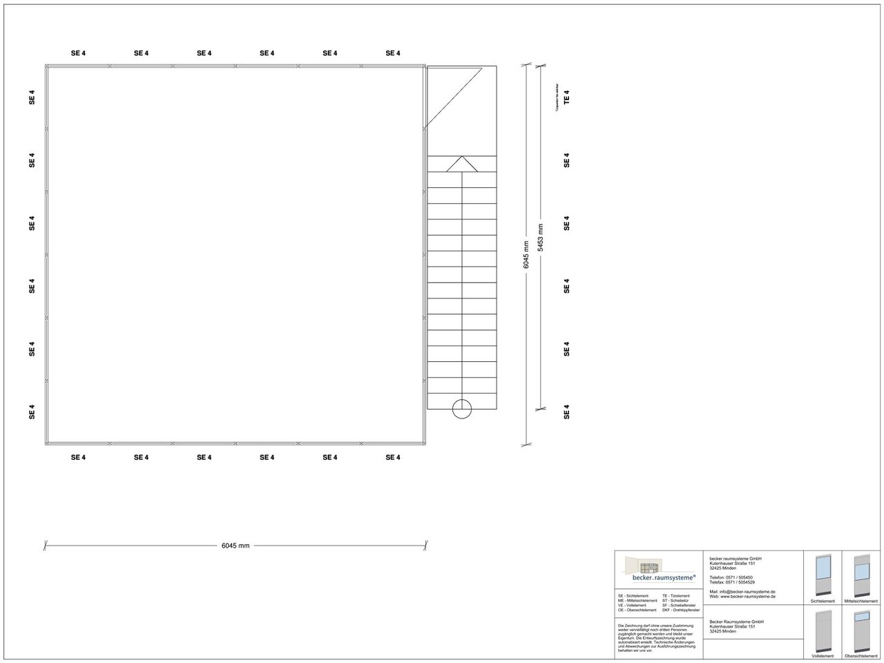 Die einzigartigen Argumente dieses Hallenbüros liegen in seiner flexiblen Bauweise und der robusten Materialauswahl. Mit Abmessungen von 6.045 x 6.045 mm im Obergeschoss und einer lichte Raumhöhe von 2.510 mm bietet es ausreichend Platz für Arbeitsplätze, Besprechungen oder administrative Tätigkeiten. Die Stahlbaubühne erreicht eine Höhe von 2.810 mm und sorgt dafür, dass der gesamte Raum effizient genutzt werden kann. Hochwertige Materialien wie warmgewalzte Stahlprofile und ein widerstandsfähiger Bühnenbelag aus Spanplatte P6 garantieren Langlebigkeit und Stabilität.
