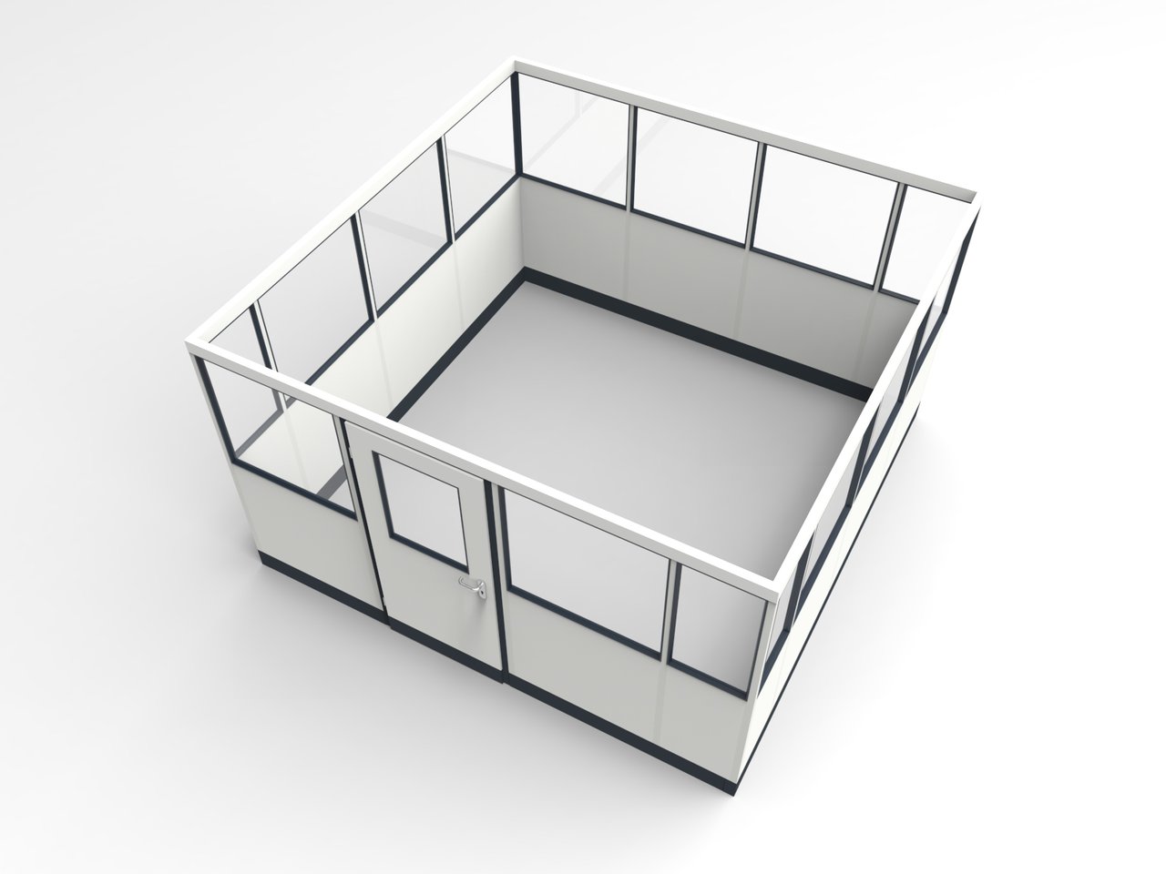 4-seitig, Abmessung: L x T x H = 3.545 x 3.545 x 2.100 mm, Innenmaß: L x T = 3.455 x 3.455 mm, Ausführung: freistehend ohne Deckenanschluss, mit Stabilisierungsprofil und Stützelementen