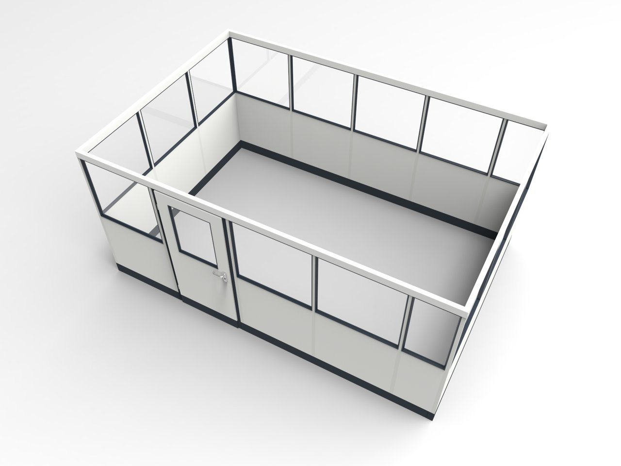 Die Stellwand SW4-4530 bietet Ihnen eine innovative Lösung, um Ihre Arbeitsumgebung optimal zu gestalten. Mit seinen kompakten Abmessungen von 4,5 x 3 m und einer großzügigen lichte Raumhöhe von 2.510 mm schafft es einen hellen und einladenden Raum, der sowohl Effizienz als auch Komfort fördert. Durch die modulare Bauweise passt sich dieses Büro flexibel an Ihre individuellen Bedürfnisse an und ermöglicht es Ihnen, Veränderungen in Ihrer Produktionsumgebung schnell und unkompliziert umzusetzen.
