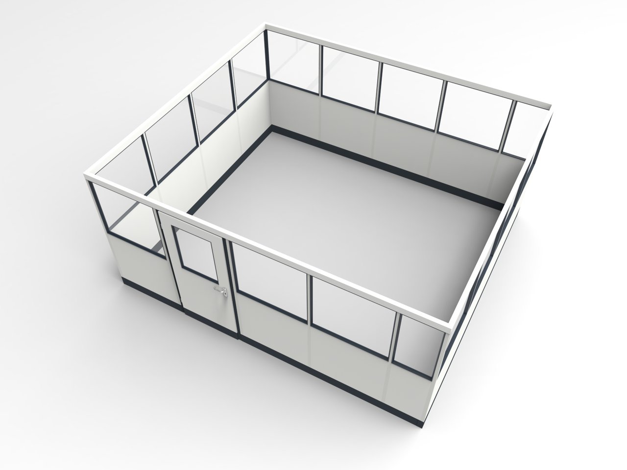 4-seitig, Abmessung: L x T x H = 4.545 x 4.045 x 2.100 mm, Innenmaß: L x T = 4.455 x 3.955 mm, Ausführung: freistehend ohne Deckenanschluss, mit Stabilisierungsprofil und Stützelementen