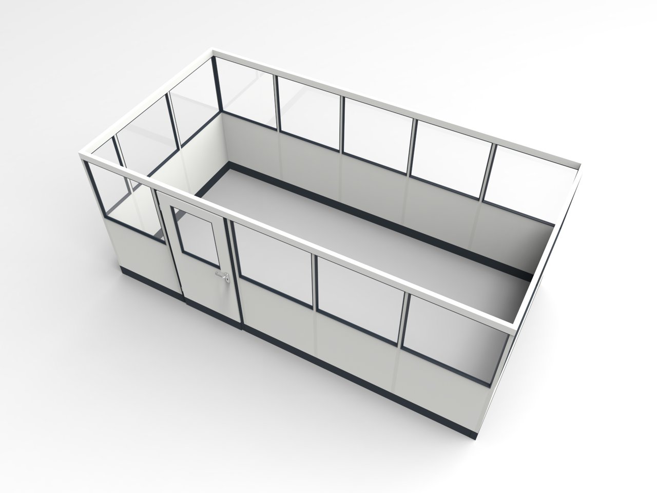 Die Stellwand SW4-5025 bietet Ihnen eine innovative Lösung, um Ihre Arbeitsumgebung optimal zu gestalten. Mit seinen kompakten Abmessungen von 5 x 2,5 m und einer großzügigen lichte Raumhöhe von 2.510 mm schafft es einen hellen und einladenden Raum, der sowohl Effizienz als auch Komfort fördert. Durch die modulare Bauweise passt sich dieses Büro flexibel an Ihre individuellen Bedürfnisse an und ermöglicht es Ihnen, Veränderungen in Ihrer Produktionsumgebung schnell und unkompliziert umzusetzen.