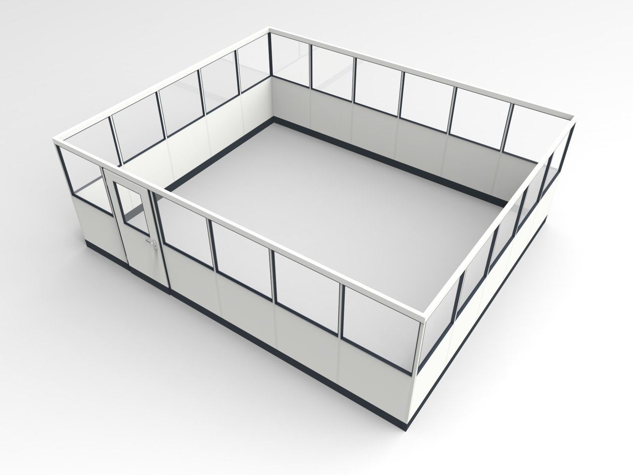 4-seitig, Abmessung: L x T x H = 6.045 x 5.045 x 2.100 mm, Innenmaß: L x T = 5.955 x 4.955 mm, Ausführung: freistehend ohne Deckenanschluss, mit Stabilisierungsprofil und Stützelementen