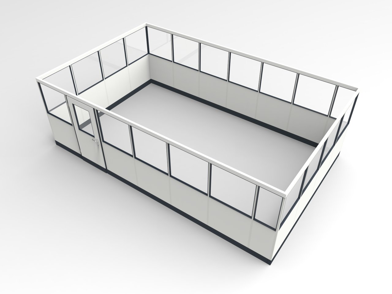 Die Stellwand SW4-6540 bietet Ihnen eine innovative Lösung, um Ihre Arbeitsumgebung optimal zu gestalten. Mit seinen kompakten Abmessungen von 6,5 x 4 m und einer großzügigen lichte Raumhöhe von 2.510 mm schafft es einen hellen und einladenden Raum, der sowohl Effizienz als auch Komfort fördert. Durch die modulare Bauweise passt sich dieses Büro flexibel an Ihre individuellen Bedürfnisse an und ermöglicht es Ihnen, Veränderungen in Ihrer Produktionsumgebung schnell und unkompliziert umzusetzen.