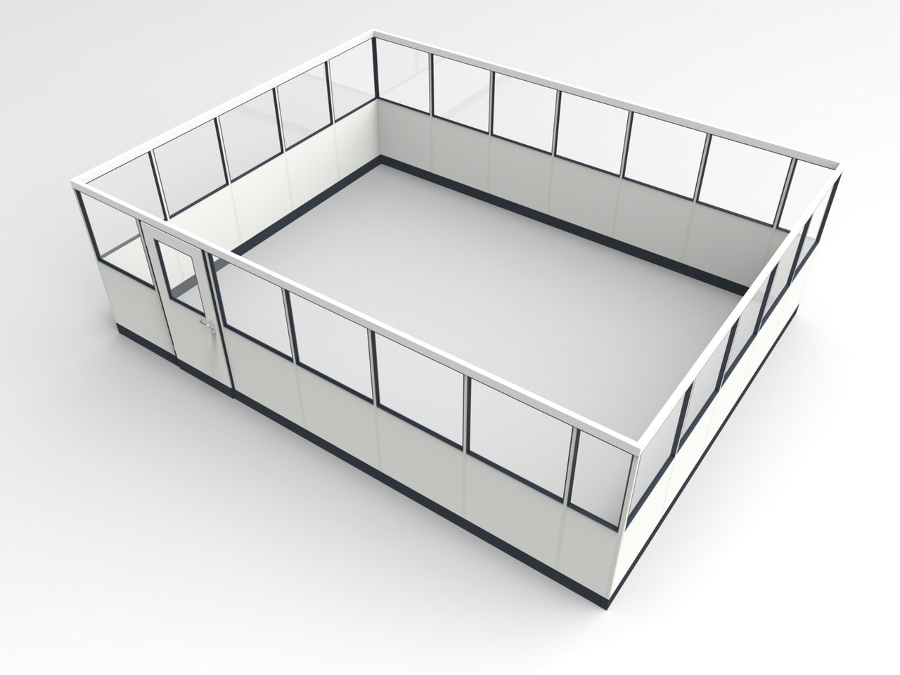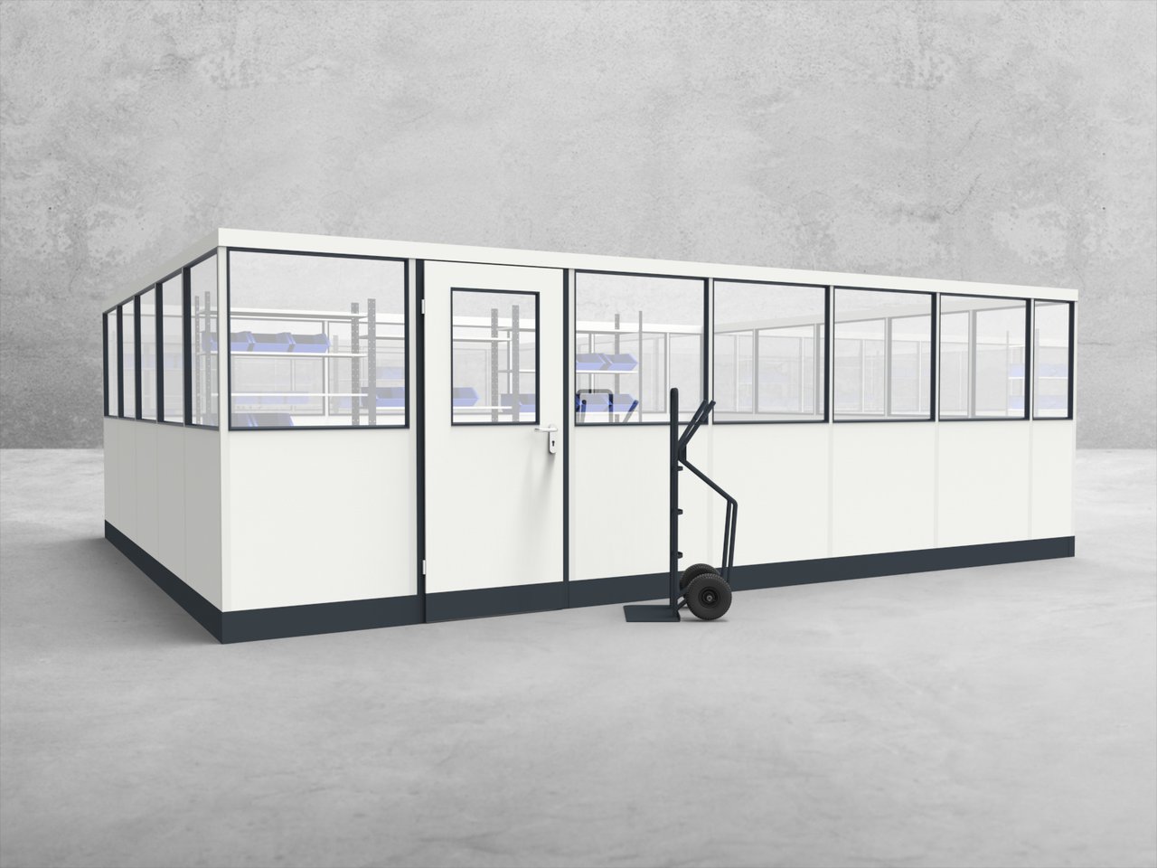 4-seitig, Abmessung: L x T x H = 6.545 x 5.045 x 2.100 mm, Innenmaß: L x T = 6.455 x 4.955 mm, Ausführung: freistehend ohne Deckenanschluss, mit Stabilisierungsprofil und Stützelementen