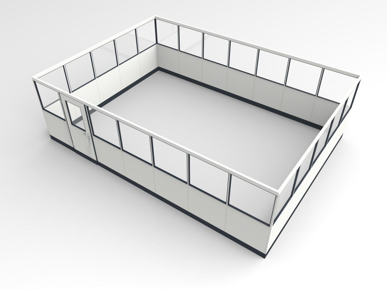 4-seitig, Abmessung: L x T x H = 7.045 x 5.045 x 2.100 mm, Innenmaß: L x T = 6.955 x 4.955 mm, Ausführung: freistehend ohne Deckenanschluss, mit Stabilisierungsprofil und Stützelementen