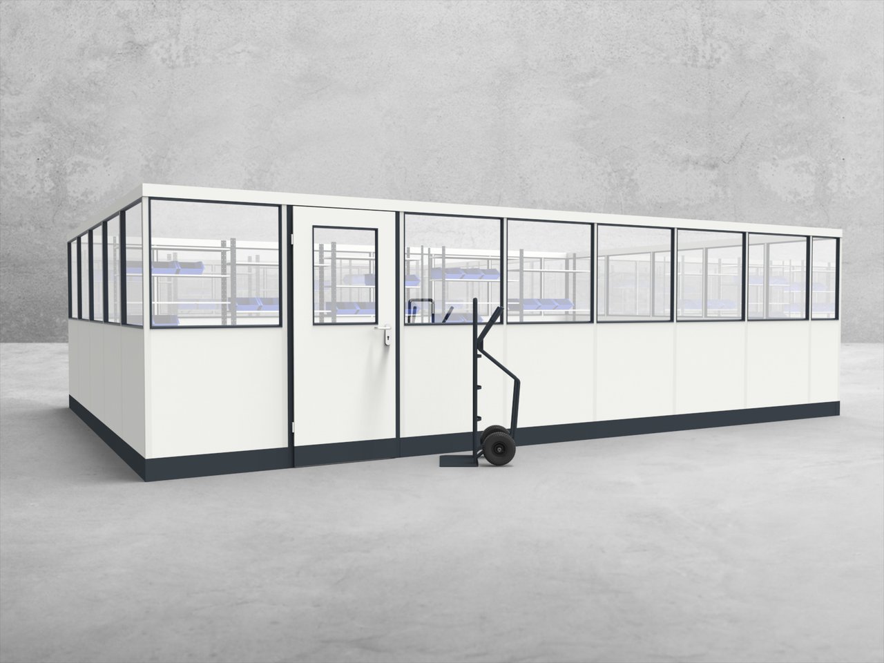 4-seitig, Abmessung: L x T x H = 7.545 x 5.045 x 2.100 mm, Innenmaß: L x T = 7.455 x 4.955 mm, Ausführung: freistehend ohne Deckenanschluss, mit Stabilisierungsprofil und Stützelementen