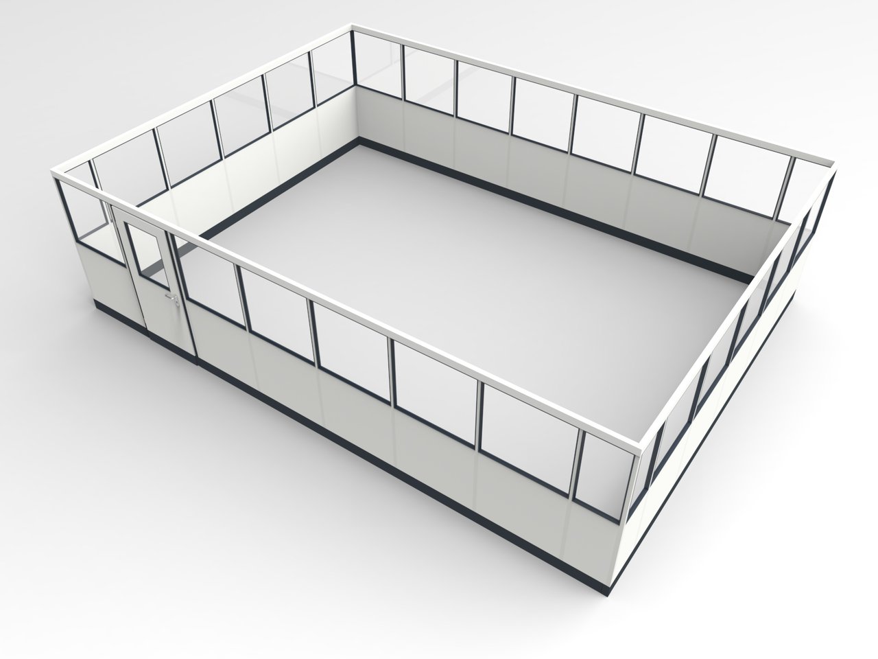 4-seitig, Abmessung: L x T x H = 7.545 x 5.545 x 2.100 mm, Innenmaß: L x T = 7.455 x 5.455 mm, Ausführung: freistehend ohne Deckenanschluss, mit Stabilisierungsprofil und Stützelementen
