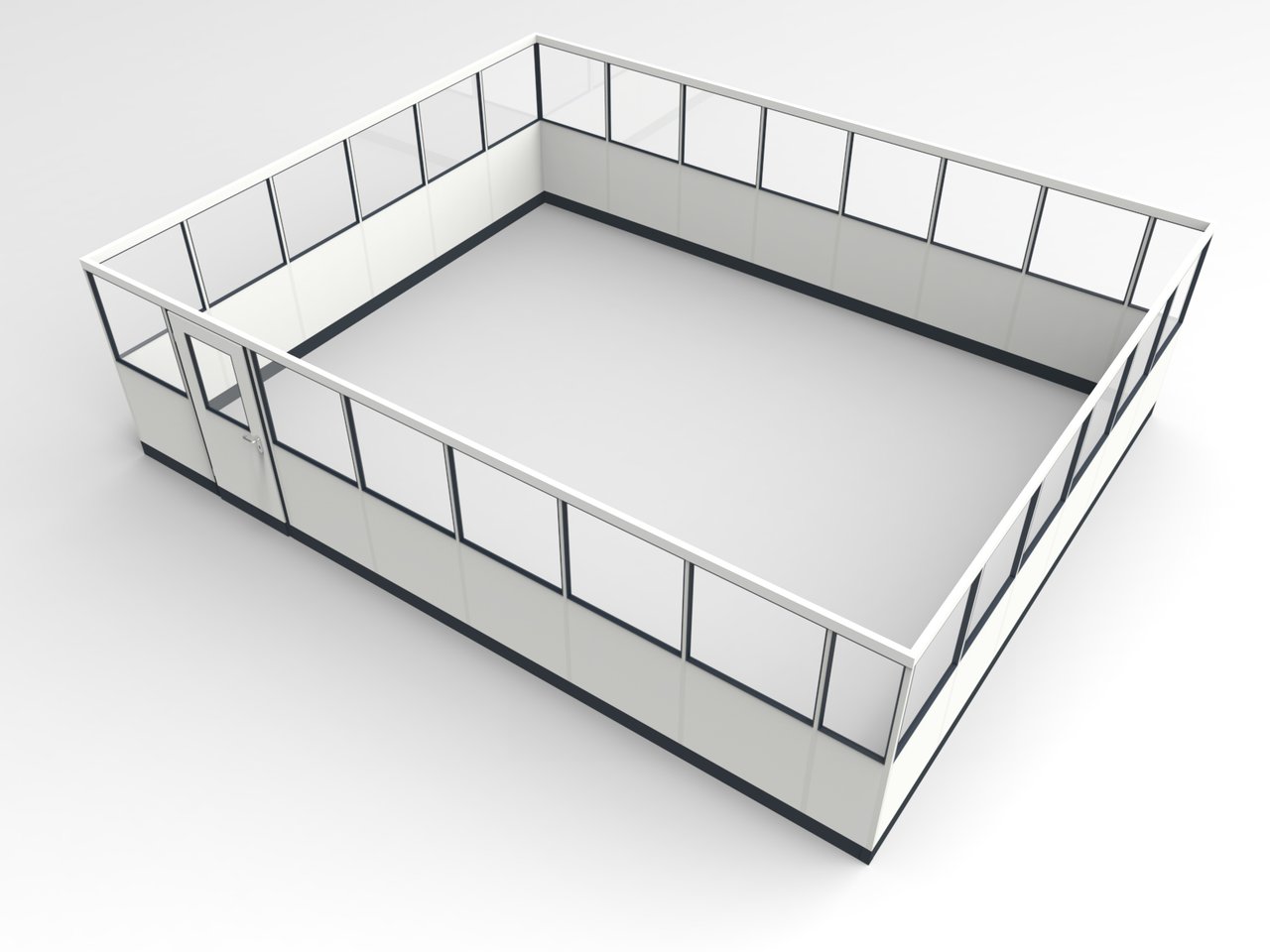 4-seitig, Abmessung: L x T x H = 7.545 x 6.045 x 2.100 mm, Innenmaß: L x T = 7.455 x 5.955 mm, Ausführung: freistehend ohne Deckenanschluss, mit Stabilisierungsprofil und Stützelementen