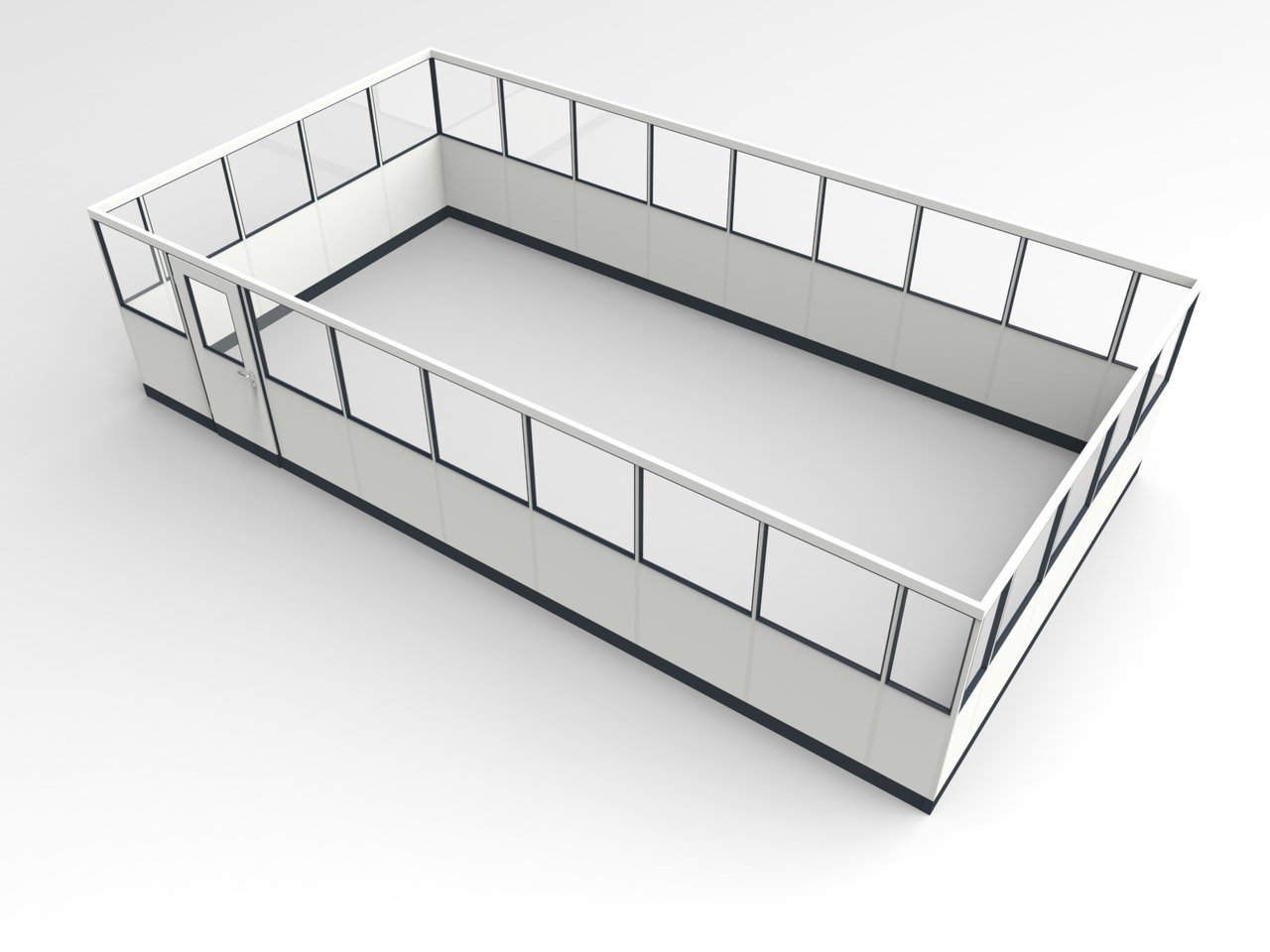 4-seitig, Abmessung: L x T x H = 8.545 x 4.545 x 2.100 mm, Innenmaß: L x T = 8.455 x 4.455 mm, Ausführung: freistehend ohne Deckenanschluss, mit Stabilisierungsprofil und Stützelementen